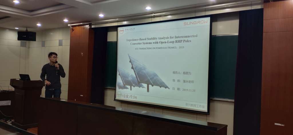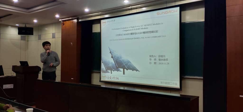 恒爱精诚团队成功举办第18期 “读报”活动恒爱精诚团队成功举办第18期 “读报”活动 2019年12月5日晚19:00,恒爱精诚团队成功举办了第18期读报活动,五名研二同学分别进行了报告。活动在逸夫楼1117报告厅举行,由杨淑英老师和马铭遥老师担任读报指导老师,全体研一、研二及博士同学受邀参加了此次读报报告会。 报告会上,五位研究生各选择了一篇论文进行报告,对论文的具体内容进行了详细的汇报,并结合自己的研究方向,在原论文的基础之上添加了自己的观点和研究。 首先是严雪松进行题目为“基于开尔文发射极侧杂散电感的大功率IGBT结温估算策略”的读报。论文首先基于IGBT开关波形分析了基于集电极侧杂散电感的温敏特性预测结温的可行性,然后在分析的基础上,做了多组实验验证各种TSEP方法的灵敏度与精度,选出一种TSEP方法并加以验证从而得到实验结论。 随后潘海龙的读报题目为“并网电压源变换器统一阻抗模型”。论文主要提出一种新的并网逆变器统一阻抗的方法,并建立电压源逆变器在αβ坐标系下的阻抗模型。 接着杨思为进行题为“基于阻抗的含开环右半平面极点的交互变流器系统稳定性分析”的读报。论文提出了一种通用的基于阻抗的稳定性分析方式,这种方式不仅可以分析阻抗比包含右半平面极点的情况,还可以对相应的子系统阻抗进行重塑来满足系统的稳定要求。 之后庄桂元的汇报题目为“大功率SiC MOSFET模块与Si IGBT性能比较”。论文主要比较了SiC MOSFET与Si IGBT的特性差异,并通过实验进行验证。 最后梁成新的读报题目为“用于混合PWM高频全桥逆变器的自适应、低损耗ZVT电路”。论文提出了一种辅助ZVT电路,可以实现主电路MOSFET管的ZVS导通,辅助电路MOSFET管可以实现ZCS开通和ZCS关闭。 每位同学读报结束后,杨淑英老师和马铭遥都会针对读报内容提出一些问题,并会给学生提一些改进的建议,帮助学生更好的理解论文内容。 读报活动,不仅读报人参与其中,获益匪浅,听报的学生们也有良多的收获,让恒爱精诚团队的学术氛围更加浓厚。最后在热烈的掌声中结束了此次读报活动。